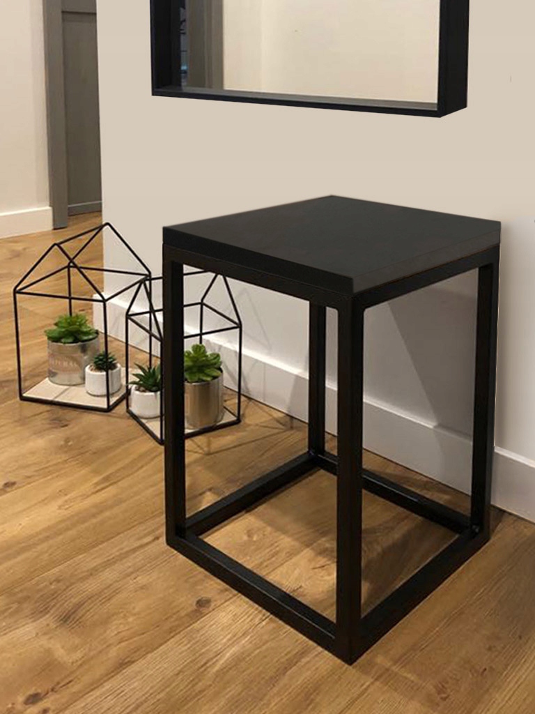 Тумба в стилі лофт стане оригінальним доповненням в кожній спальні і не тільки. Він також підійде як додаткове місце для сидіння в передпокої, де можна комфортно взутися. Конструкція виготовлена зі сталі з порошковим покриттям чорного матового кольору, а стільниця виготовлена з 18 мм. ламінована дошка в декількох кольорах на вибір. Стіл не займає багато місця і може використовуватися як додаткова табуретка або прикраса.