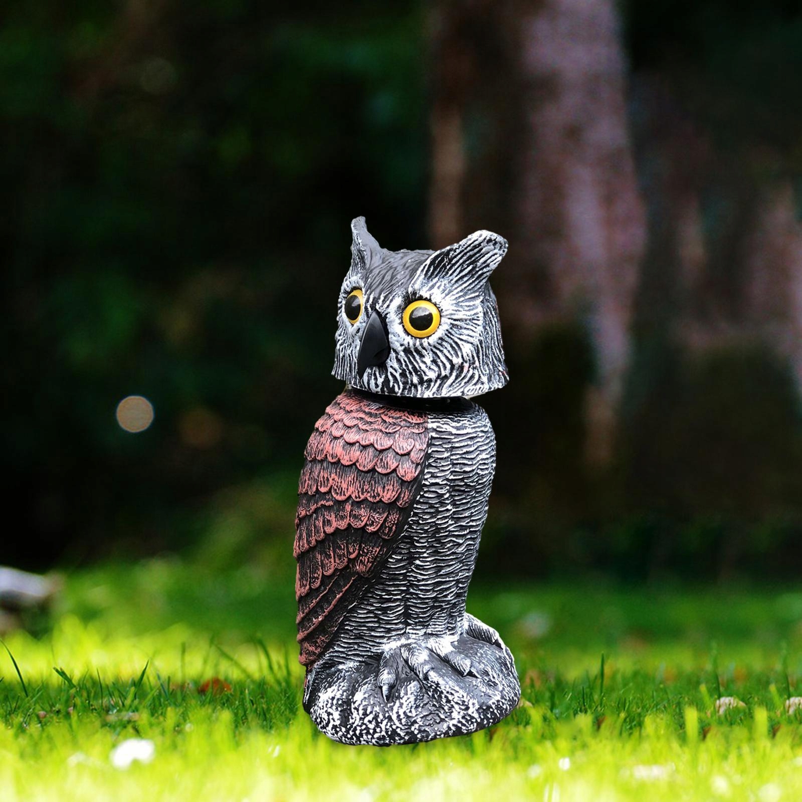 [Реалістична приманка для сови]: ця скульптура-приманка для сови яскрава й деталізована з яскравими кольорами, ефективно відлякуючи птахів у саду.