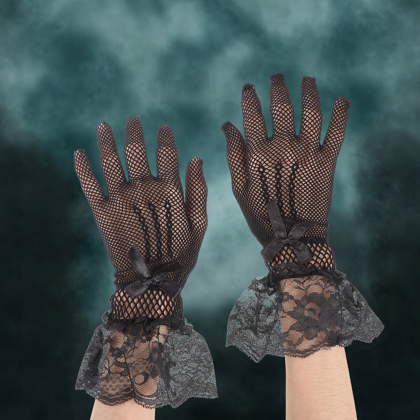Легко накладається та миттєво створює приголомшливу нову зачіску. Красива фата і рукавички для жінок, дівчат і дам. Вони ідеально підходять, щоб одягнути вас на Хеллоуїн, костюмовані вечірки, косплей, карнавал, костюмовану вечірку, весілля, похорон тощо. Легко задовольнить різні потреби.