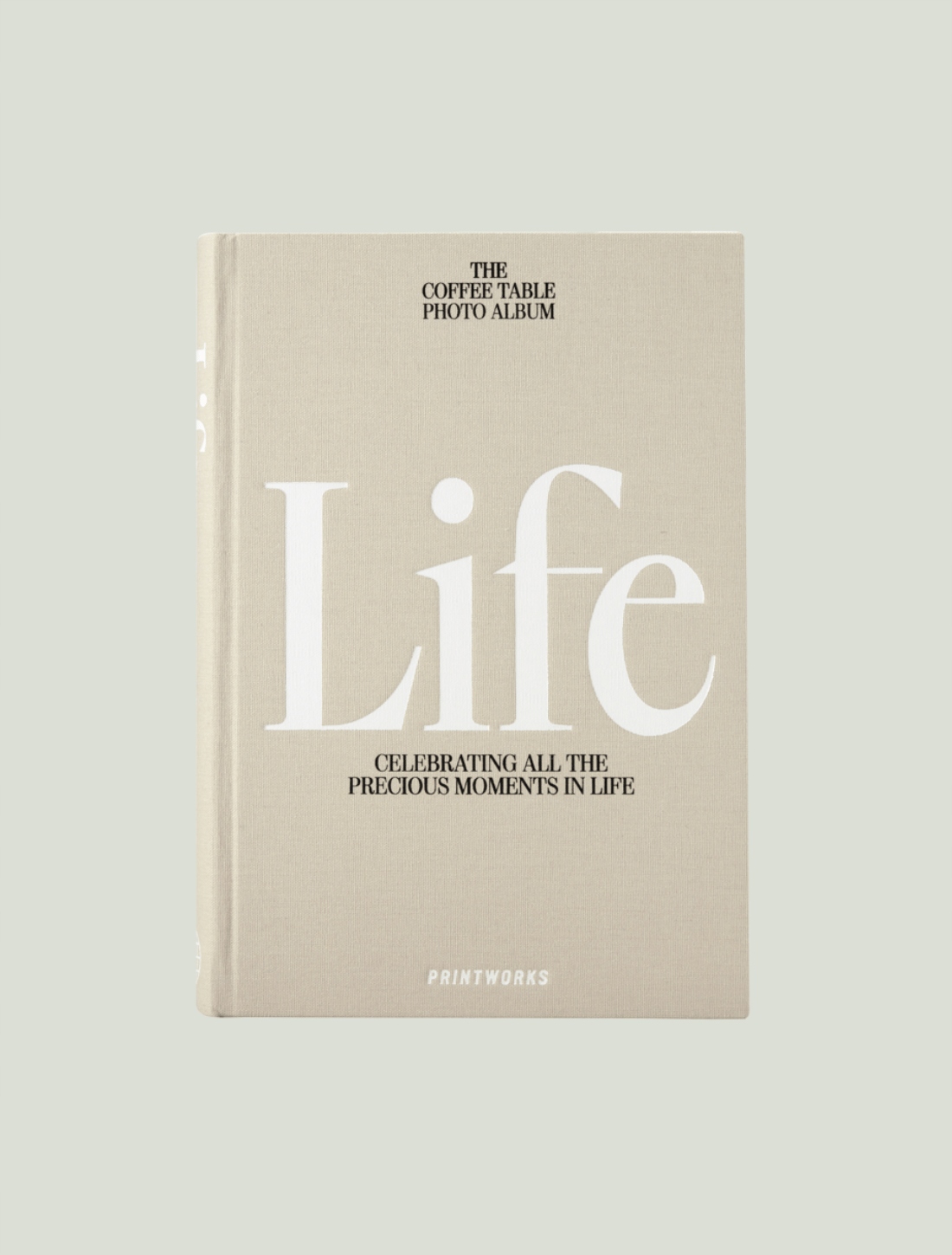 Ця фотокнига в нейтральних кольорах нагадує жорстку художню книгу, ніж традиційний фотоальбом. Після закриття це виглядає як елегантна книга для журнального столика, але після відкриття вона наповнена 80 білими сторінками високоякісного фотопапарого паперу.