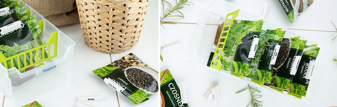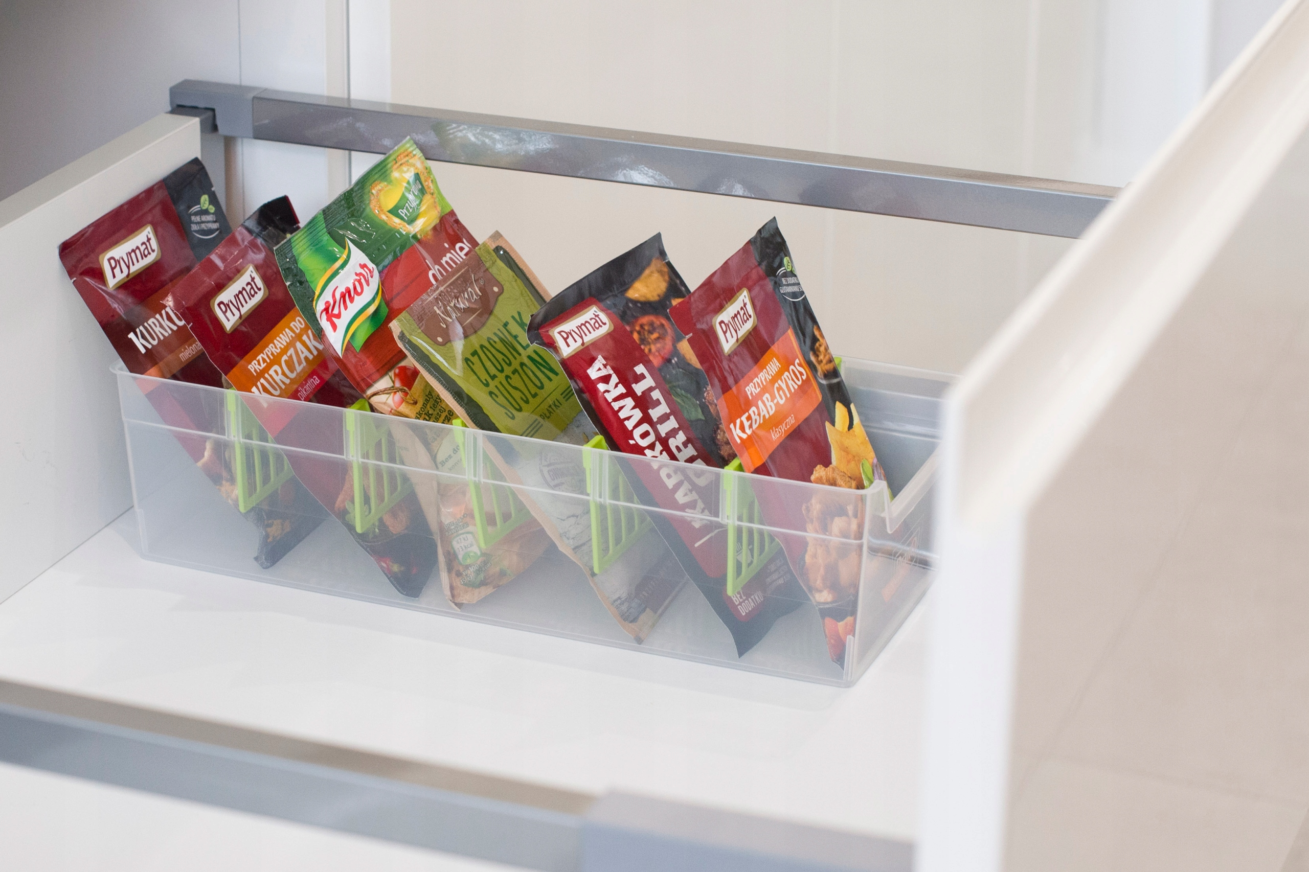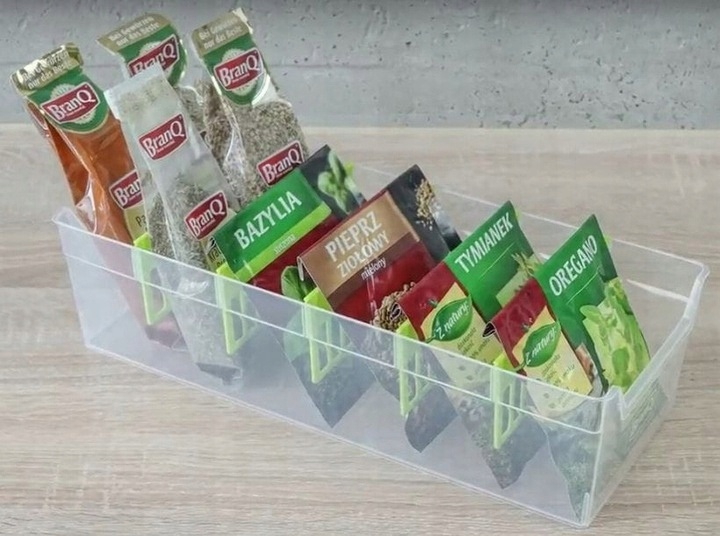 Ідеальний кухонний органайзер для зберігання спецій. Контейнер підходить для будь-яких розмірів кухонних шаф. Виготовлений з високоякісного ПВХ. У набір входить п'ять відділень, які можна прикріпити відповідно до ваших потреб.