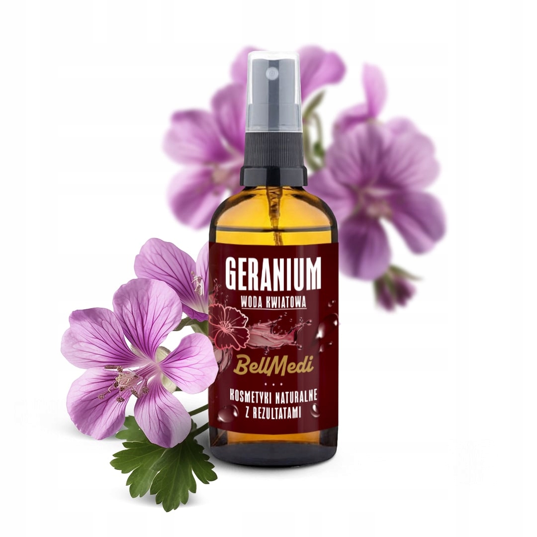 Натуральна вода квітки герані виготовлена з свіжих листків ароматного герані . не містить консервантів або синтетичних речовин. Він ідеально підходить для шкіри комбінації та тих, хто страждає від екземи . А також для найчутливішої шкіри. Це красиво пахне і освіжаюче . Він походить з Індії і доступний у пластикових пляшках.