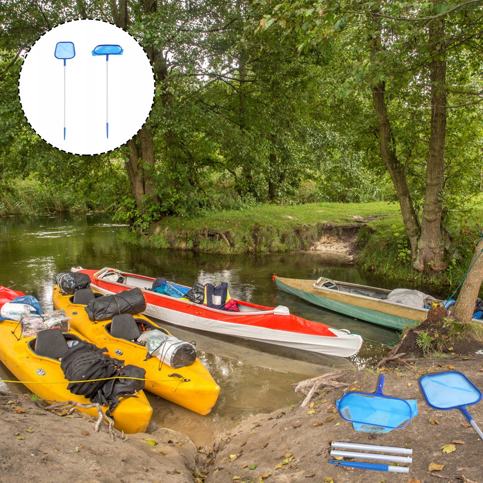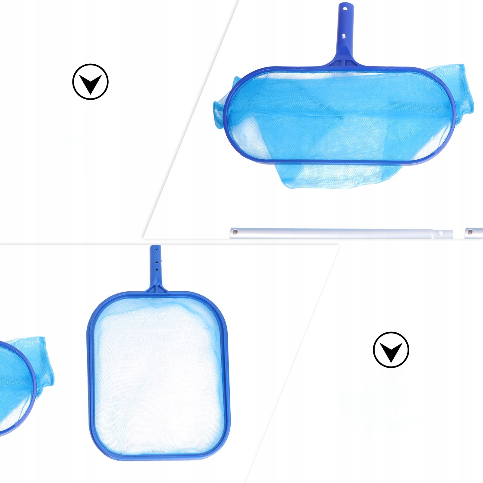 ✅Цей набір очисних сіток виготовлено з преміального ПВХ та алюмінієвого матеріалу. Цей висувний набір сіток для чищення басейну зі стрижнем має тонку сітку, щоб легко згрібати дрібну рибу, сміття з басейну, деякі водні рослини та інші предмети з басейну.