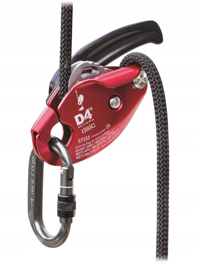 D4 від ISC є одним з найкращих спускових пристроїв на польському ринку, призначених для роботи на висоті. D4 майже повністю виготовлений з алюмінієвих сплавів (включаючи важіль регулювання), тому він не схильний до зносу та пошкоджень. Пристрій швидко завоював визнання серед техніків мотузкового доступу та, безумовно, є кращою альтернативою моделям, виготовленим із комбінації алюмінію та пластику.