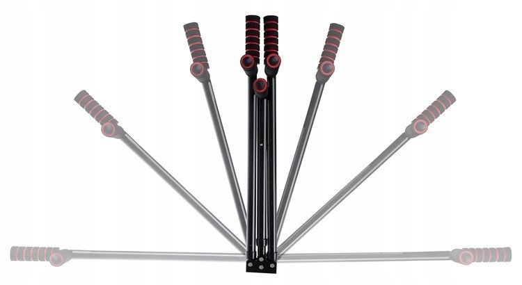 - 6 РІВНІВ РЕГУЛЮВАННЯ - пристрій для розтягування має цілих 6 рівнів регулювання для кожної з 3-х рук. , завдяки якому кожен користувач зможе більшою проблемою адаптувати його до своїх потреб і вподобань.