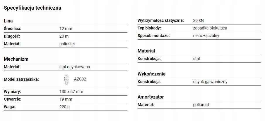 LINOSTOP II ED Самозатискний пристрій LINOSTOP II ED - довжина троса 20 м