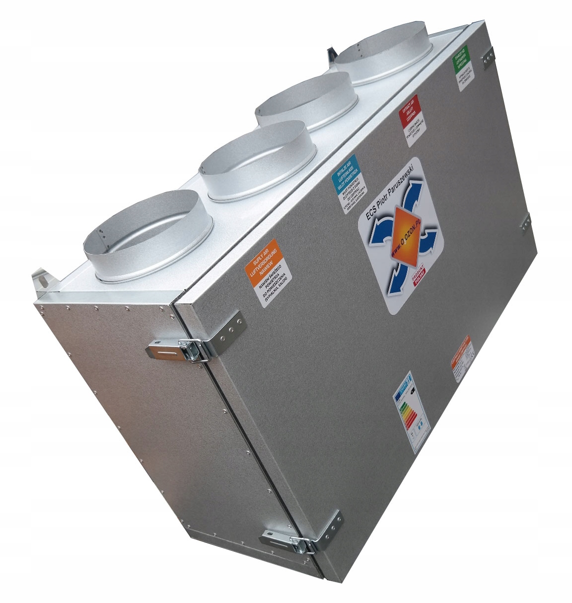 Кожух виготовлено з тонких алюмінієвих і цинкових пластин, оцинкованих з обох сторін, які спеціально формуються на верстатах з ЧПК і стаціонарно кріпляться за допомогою оцинкованих заклепок, створюючи жорстку самонесучу конструкцію. Алюмоцинковий матеріал забезпечує відмінний захист поверхонь, які контактують з вентиляційним повітрям, і герметизує всі елементи корпусу. З точки зору акустики та тепла, корпус захищений 30-міліметровим шаром вовни