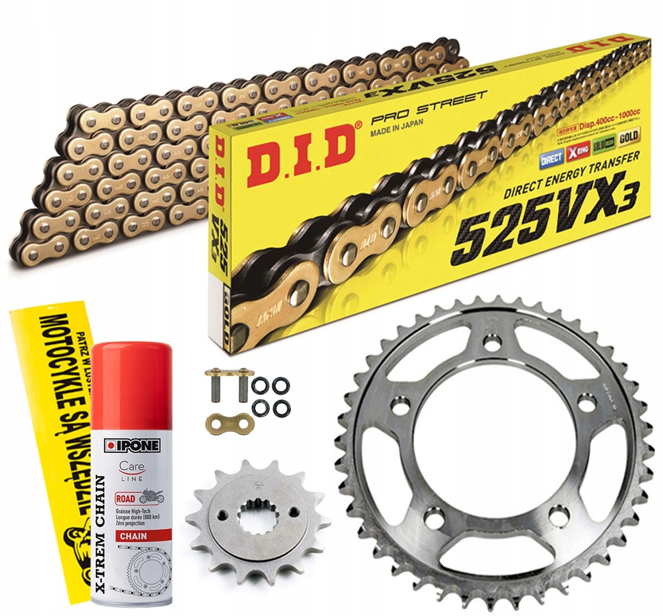 - ланцюг: DID 525 VX3 G&B 108 (затискач у комплекті)