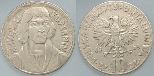 ПРЛ, 10 злотих Микола Коперник 1969 р., Мн., Прекрасний,