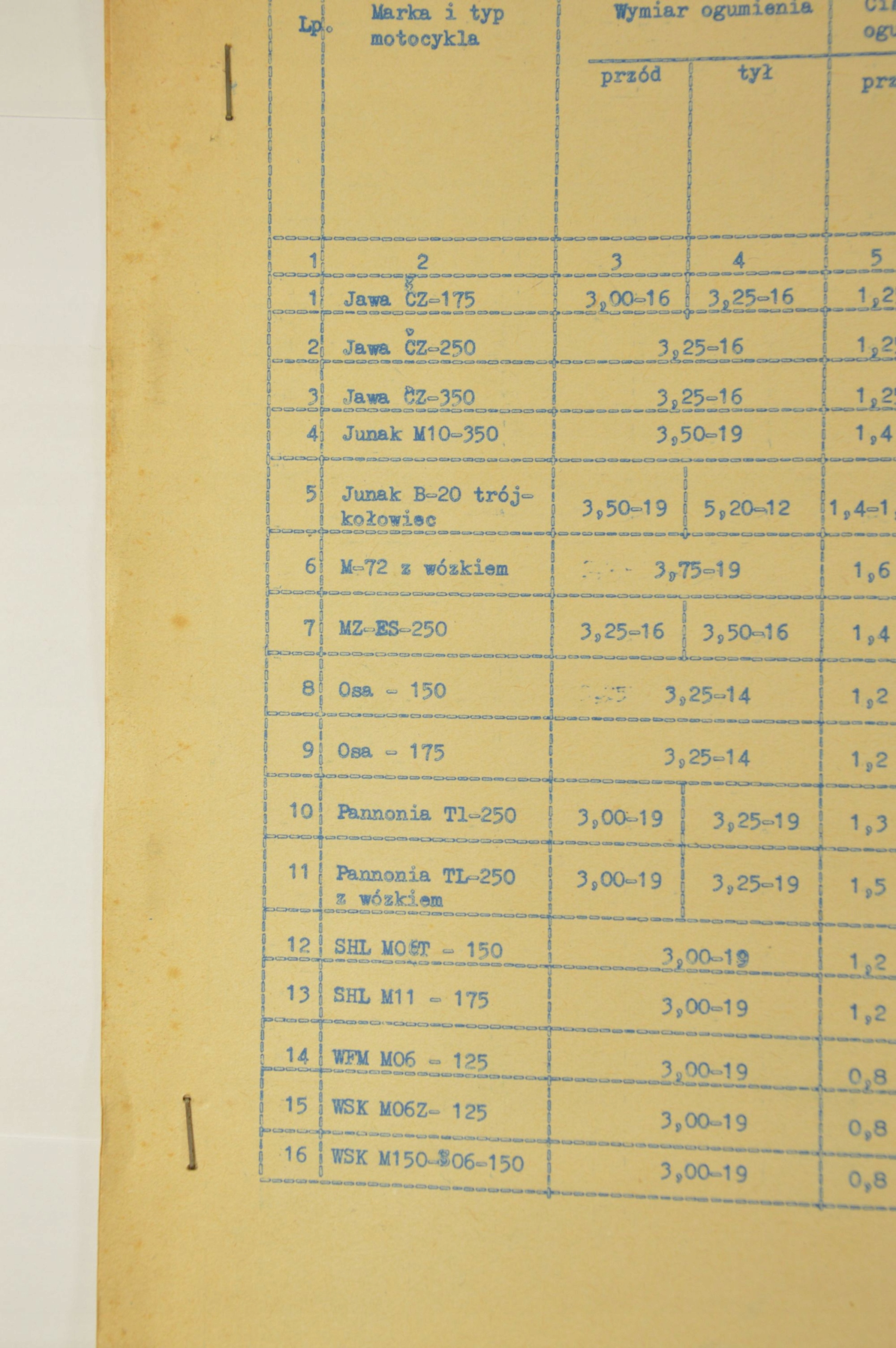 Оригінальний документ періоду Польської Народної Республіки. Автотранспортний інститут - Попереднє зведення технічних даних для діагностики безпеки водіння мотоциклів і скутерів. Повний документ із вкладенням.