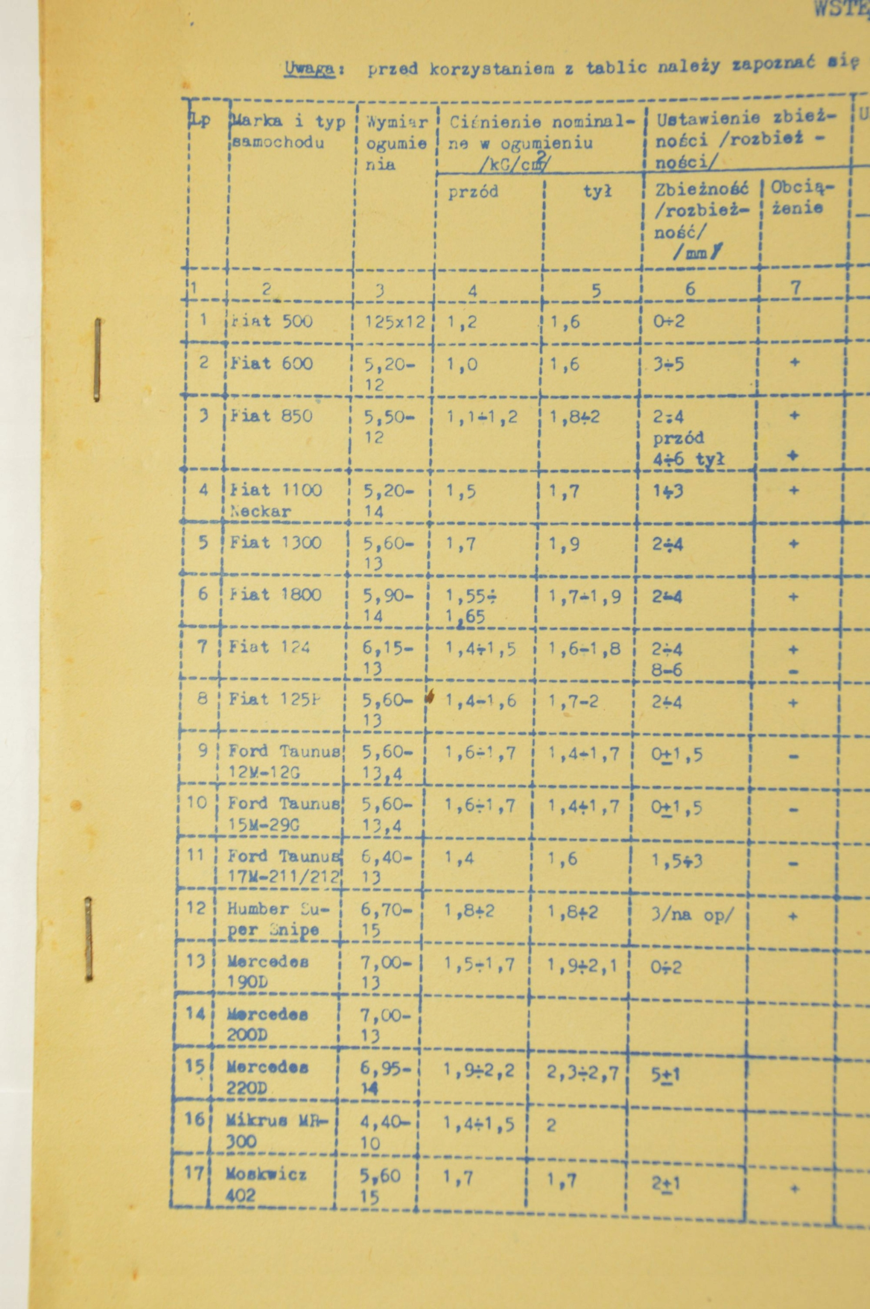 Оригінальний документ періоду Польської Народної Республіки. Автотранспортний інститут - Попереднє зведення технічних даних для діагностики безпеки руху легкових автомобілів. Повний документ із вкладенням.