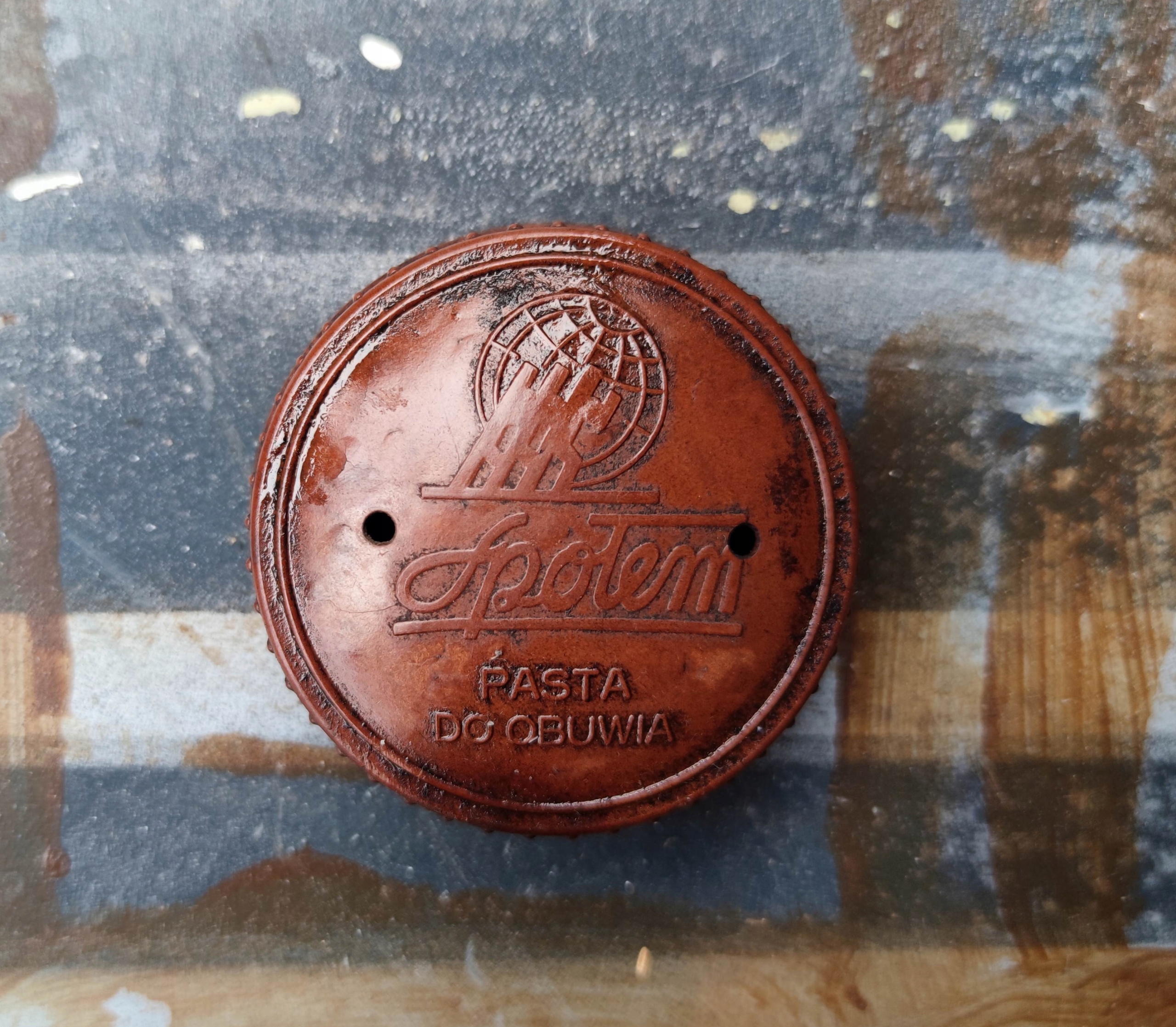 Предметом продажу є стара упаковка PRL для крему для взуття Społem виробництва Zakłady Wytwórcze в Кельце.
