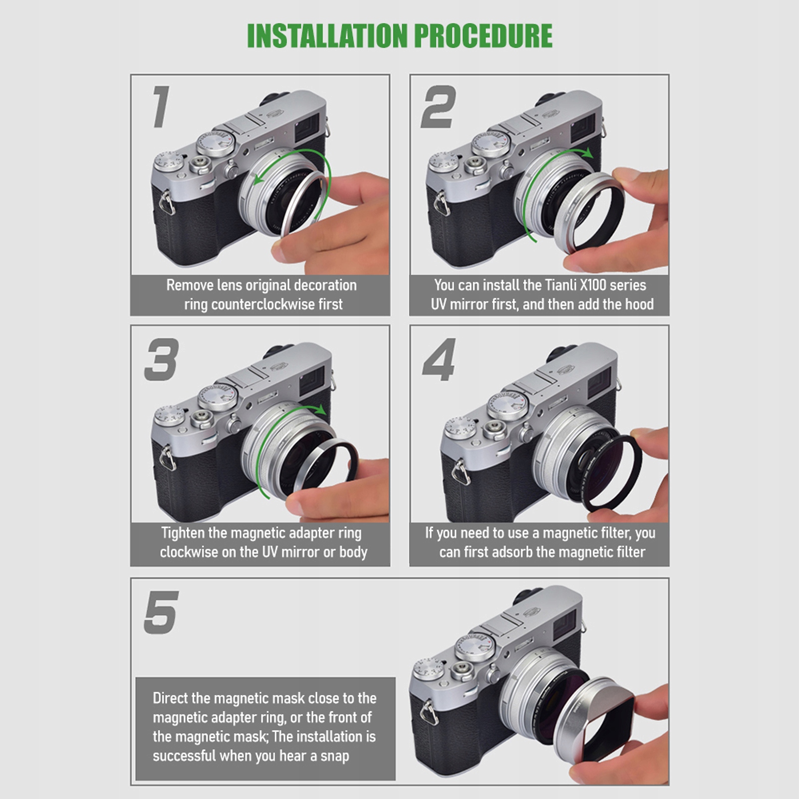 Pro Tanle Square Metal Lens Exchange Hood fujifilm fuji x100vi d5