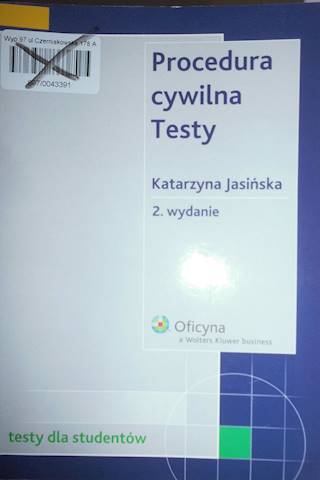 Просматривая «Procedura cywilna testy - K. Jasińska», вы можете быть уверены, что данный товар из каталога «[rubrica_name]» будет доставлен из Польши и проверен на целостность. В цене товара, указанной на сайте, учтена доставка из Польши. Внимание!!! Товары для Евросоюза, согласно законодательству стран Евросоюза, могут отличаться упаковкой или наполнением.
