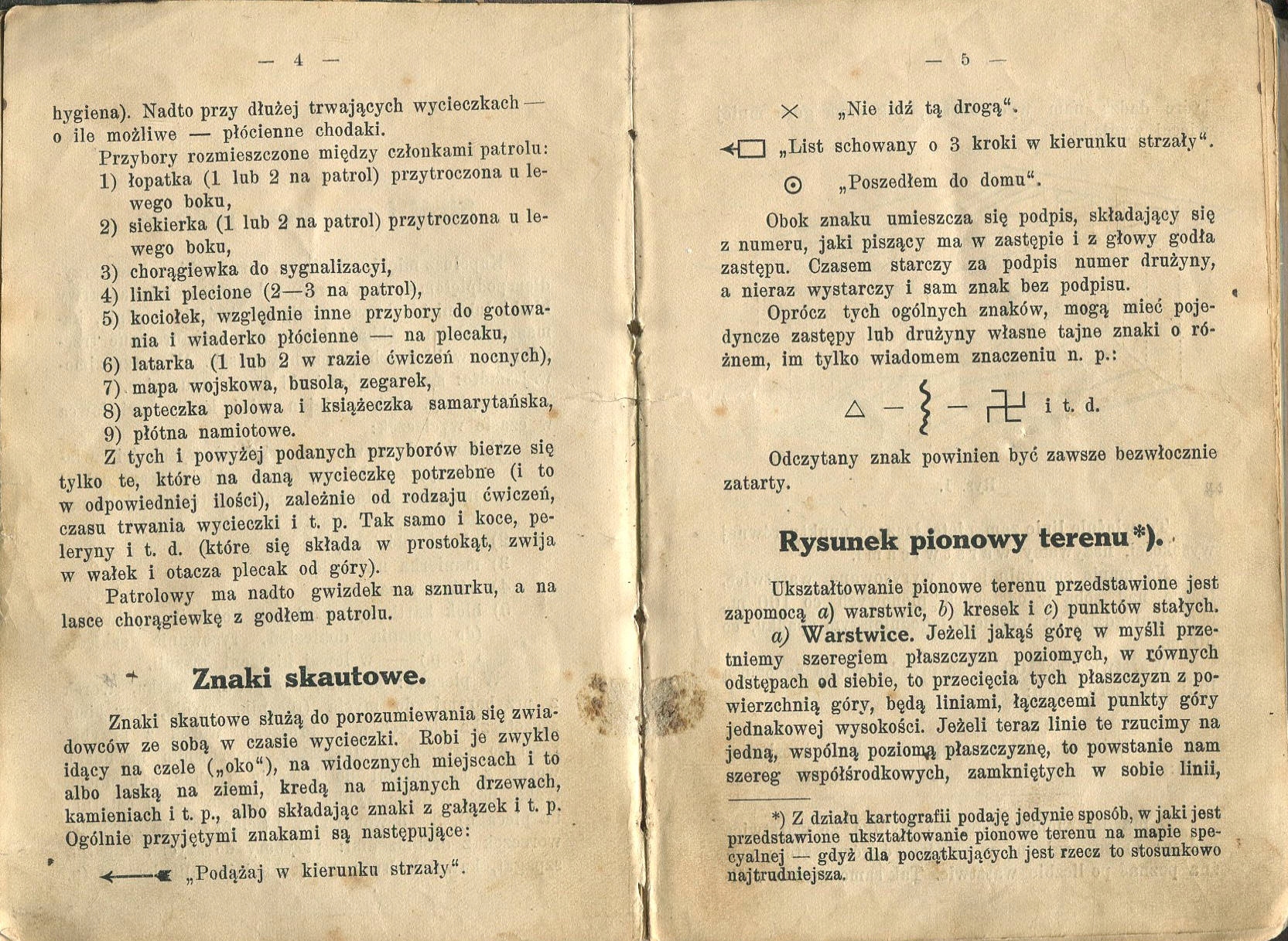 Стан: пошкоджена палітурка, відсутність половини форзаців, розриви, плями та бруд на сторінках, штампи II Włocławek Scout Team ім Тадеуша Костюшка та власністьо. Томашевський сержант W. P. 1 p. p. L.