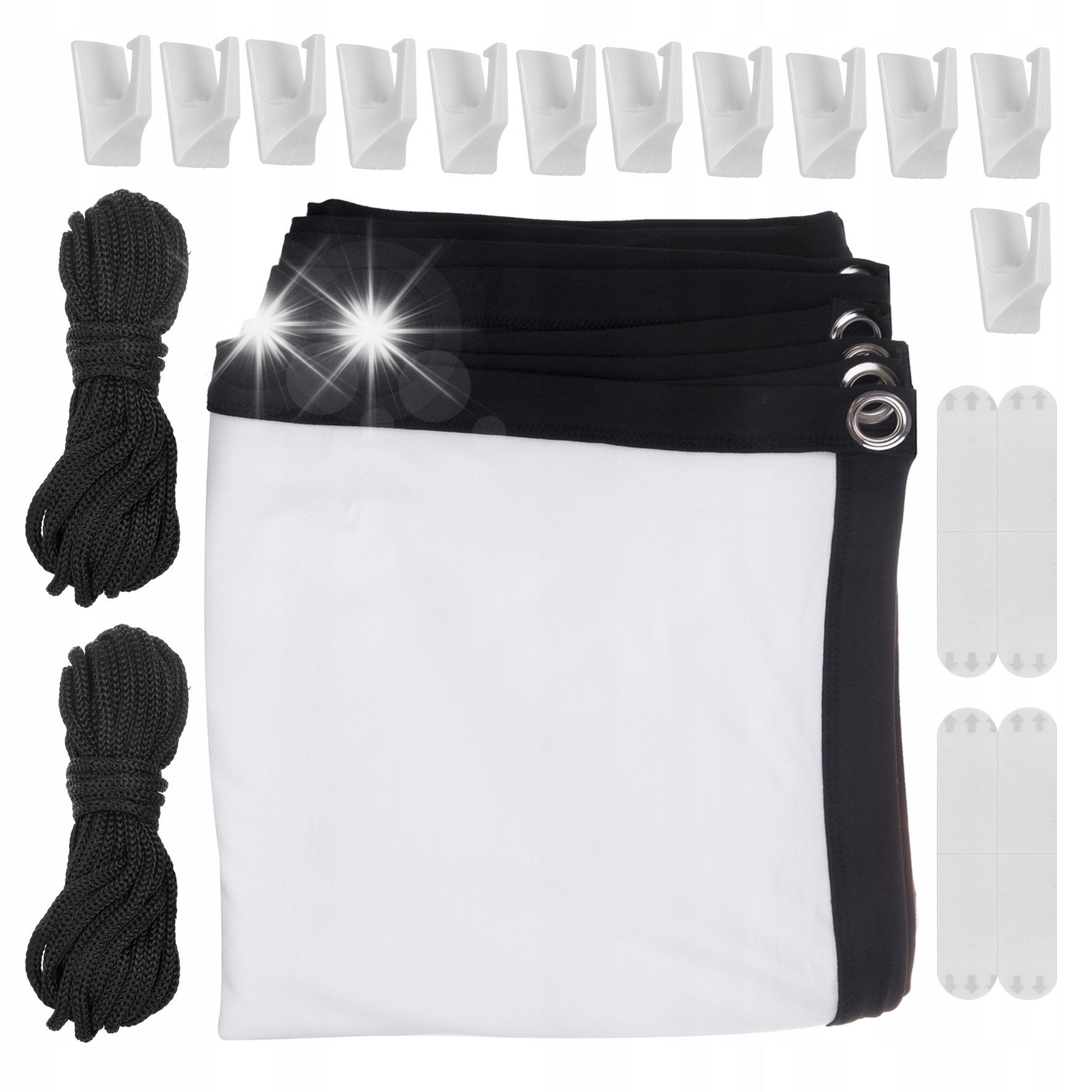 Екран кріпиться до стіни за допомогою гачків і самоклеючої стрічки, які входять у комплект, тому його можна легко зняти та прикріпити в іншому місці. Ви також можете використовувати для складання мотузку, що входить до комплекту.