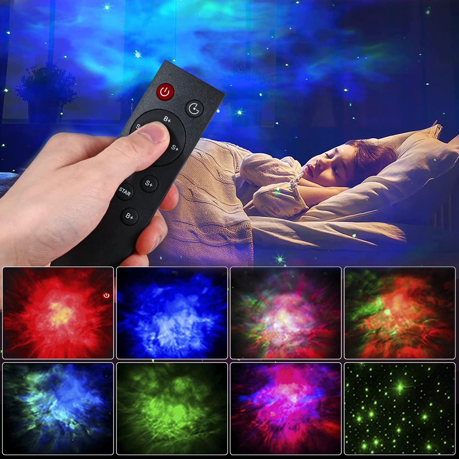 ✅ Регулювання яскравості туманності та зірок:Проектор дозволяє точно регулювати яскравість обох туманність і зірки. зірок, пропонуючи п’ять рівнів яскравості для туманності та три рівні для зірок, що дозволяє створити ідеальну атмосферу в кімнаті.