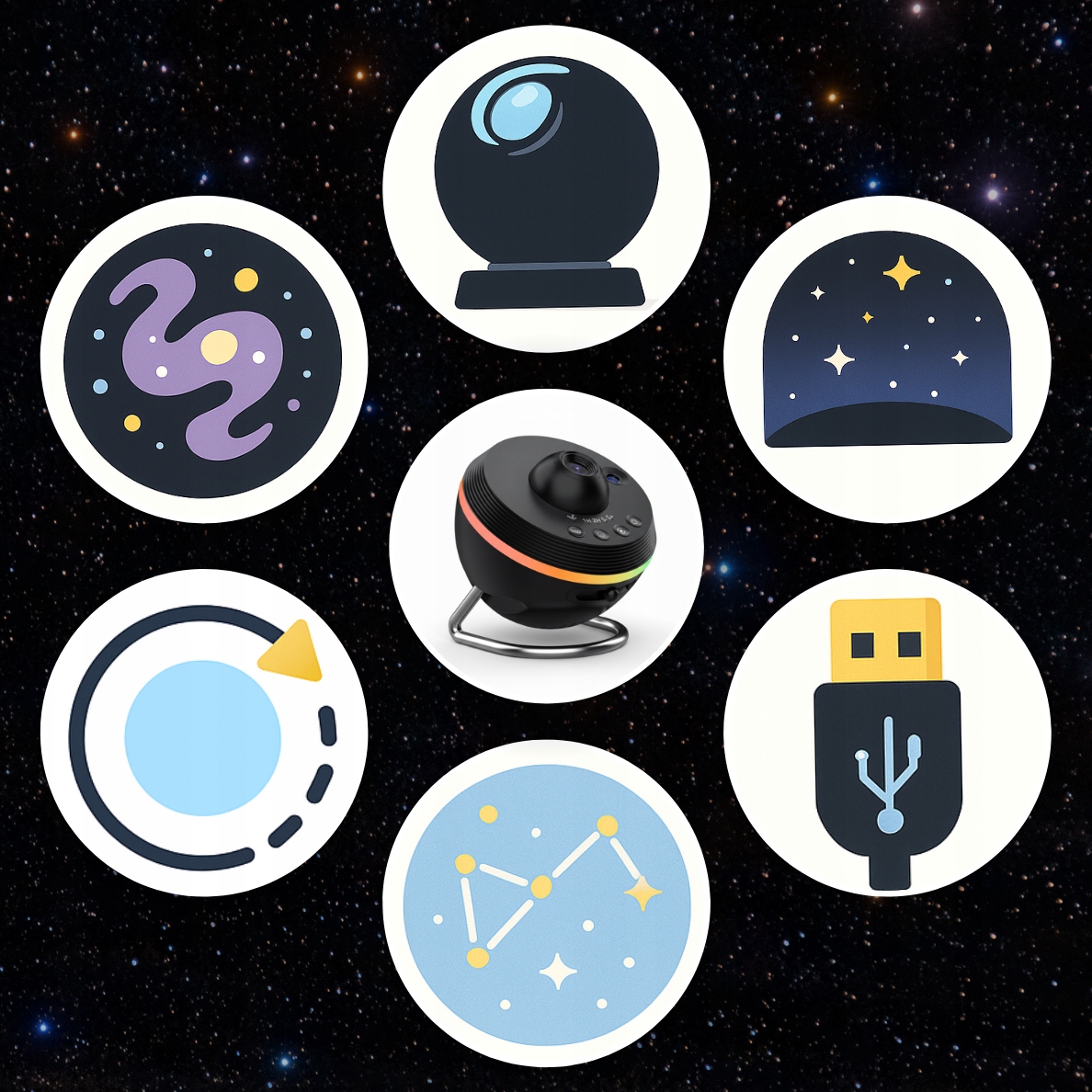 ✅ Створює унікальну атмосферу завдяки галактичним проекціям.
