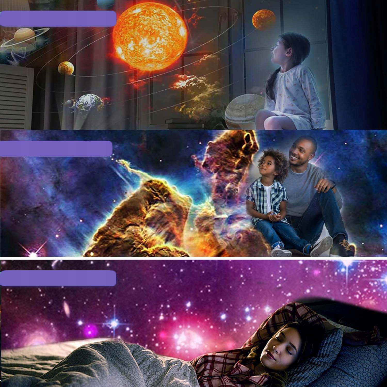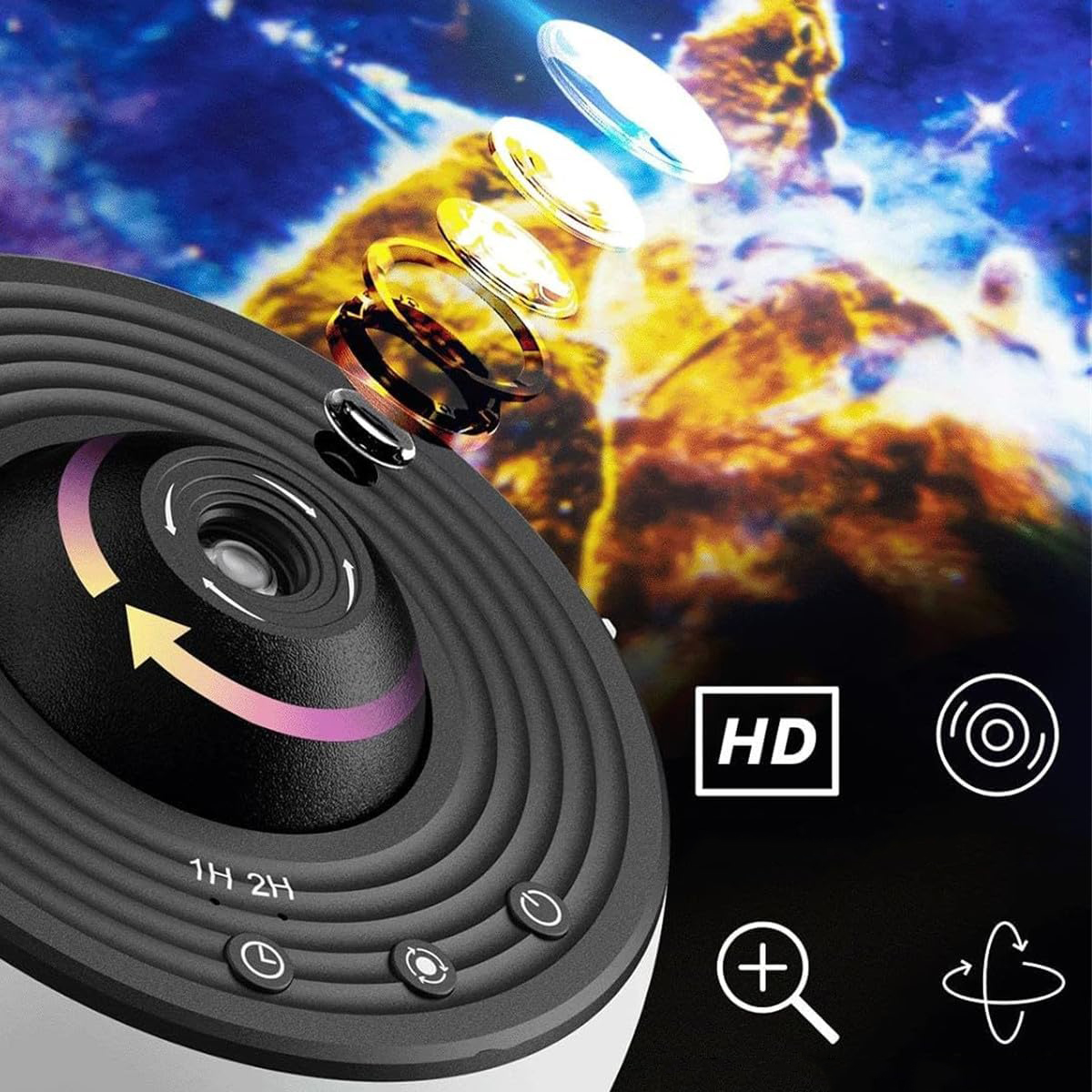 ➡️ Реалістичний HD-планетарійний проектор:цей планетарійний зірковий проектор постачається з 12 дисками з фільмами, які показують планети та природне світло. Галактичні ліхтарі високої чіткості освітлюють стіни та стелю зірками й туманом, створюючи відчуття занурення, яке перенесе вас углиб галактики.