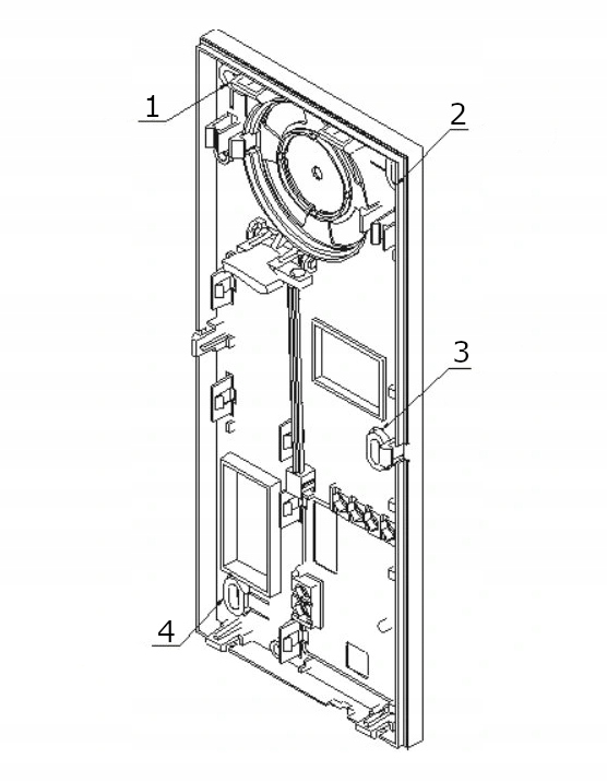 - Дві кнопки: верхня один для відкриття електромагнітного затвора, нижній використовується для розширених систем внутрішнього зв’язку (зворотний зв’язок, відкриття воріт, виклик і перемикання камер у системі ВІДЕО).