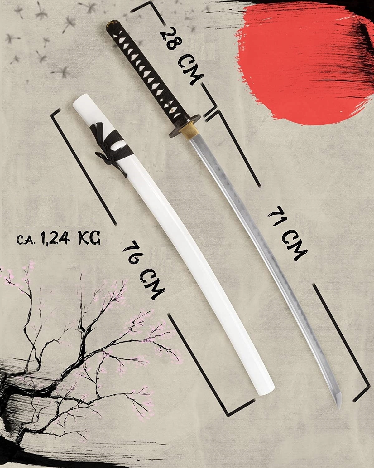 Вага з піхвами: приблизно 1,24 кг