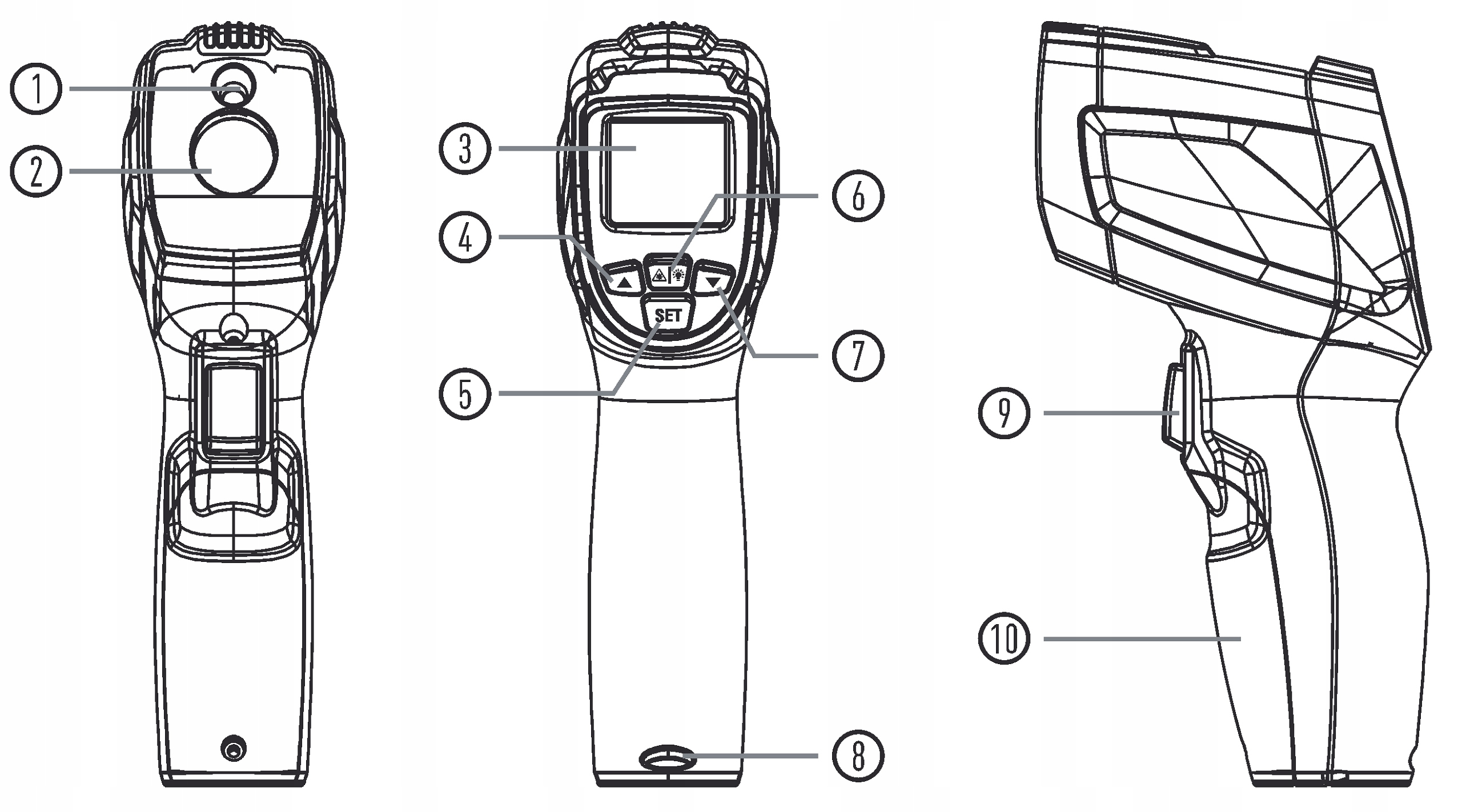 Лічильник для дистанційного вимірювання температури (пірометр) із змінною коефіцієнт випромінювання b> від 0,1 до 1,0.