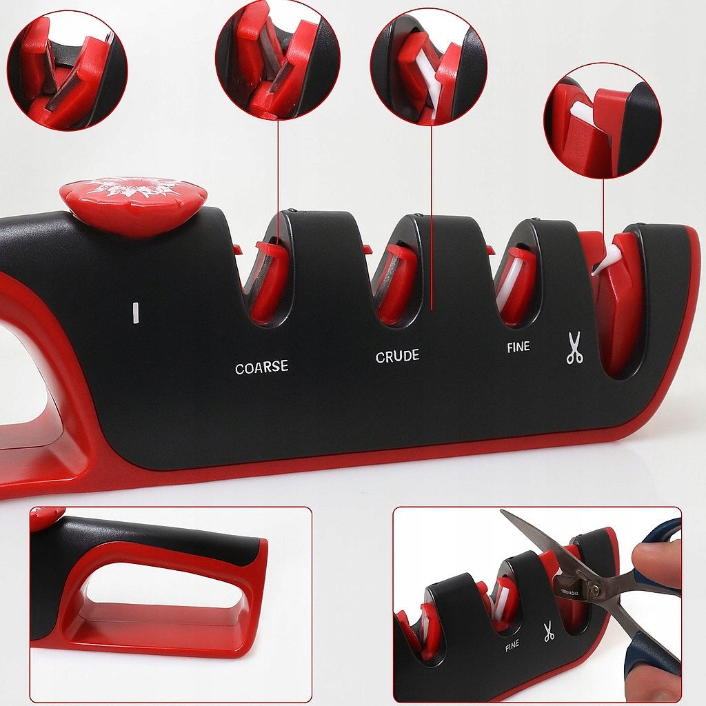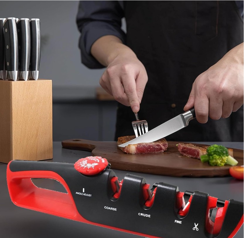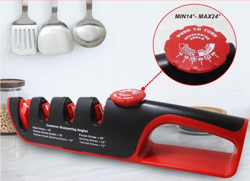 Точилка 4-в-1 із регульованим кутом заточування — незамінний інструмент на кожній кухні.