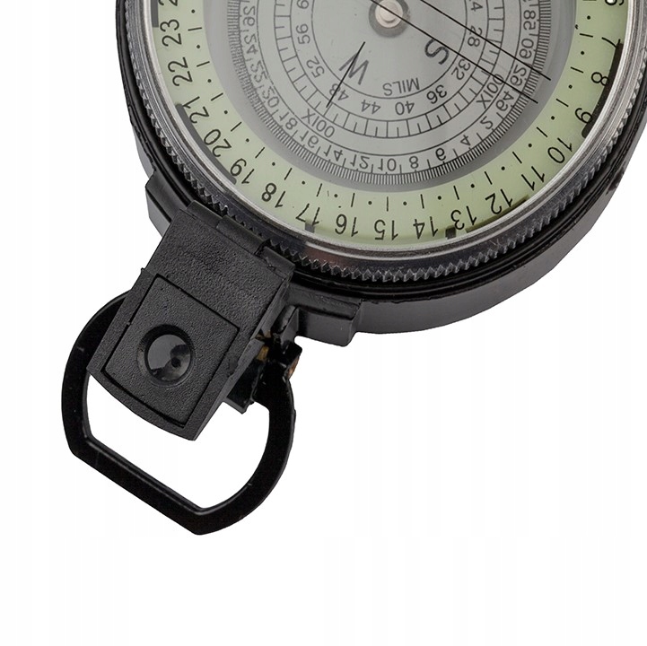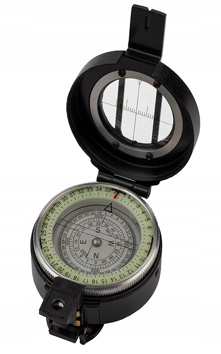 Компас має приціл зі збільшувальною лінзою та лінійною шкалою.