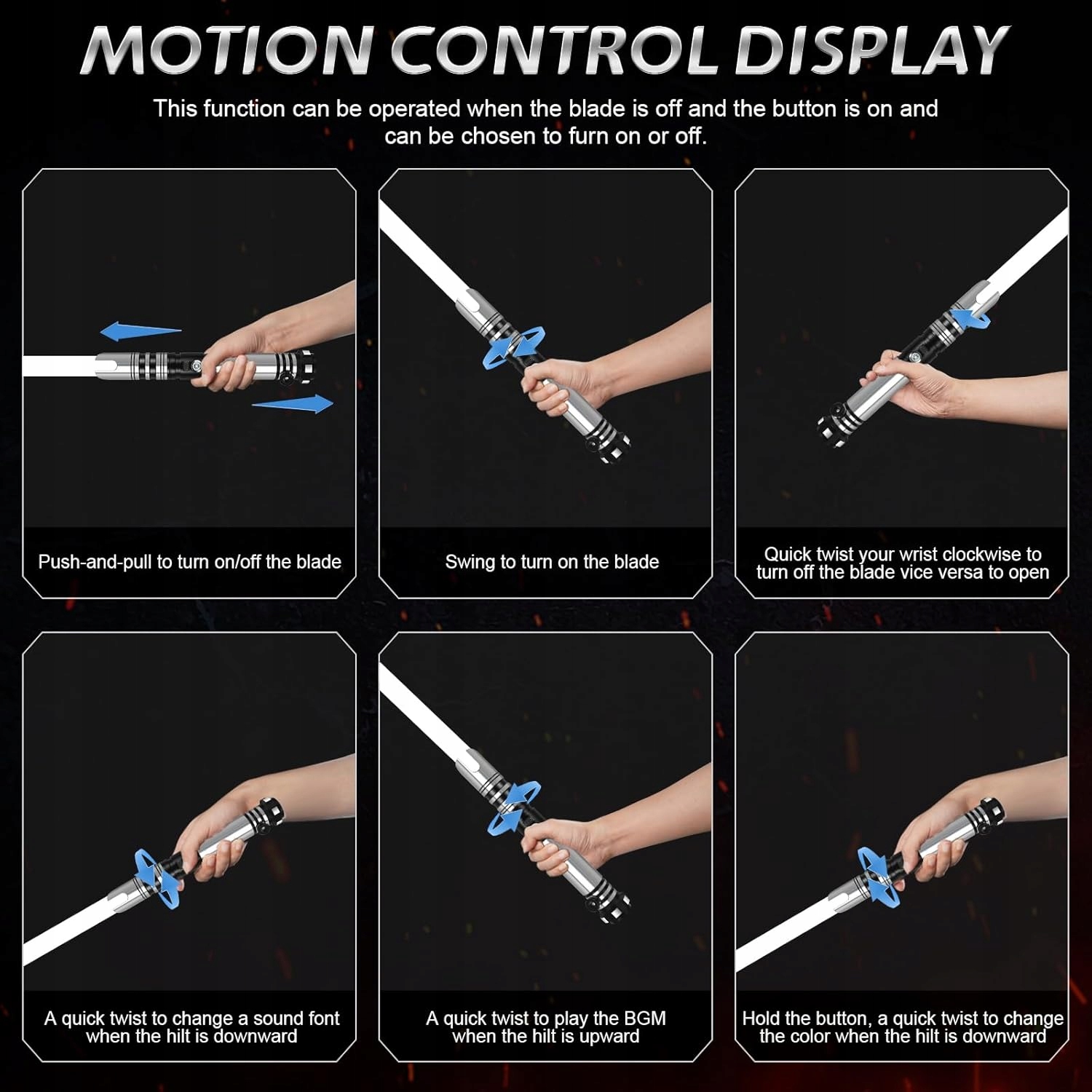 Контроль руху - дозволяє вмикати і вимикати лезо, змінювати звукові шрифти, кольори та музику через обертання, натискання, вбивство, натискання та потяг.