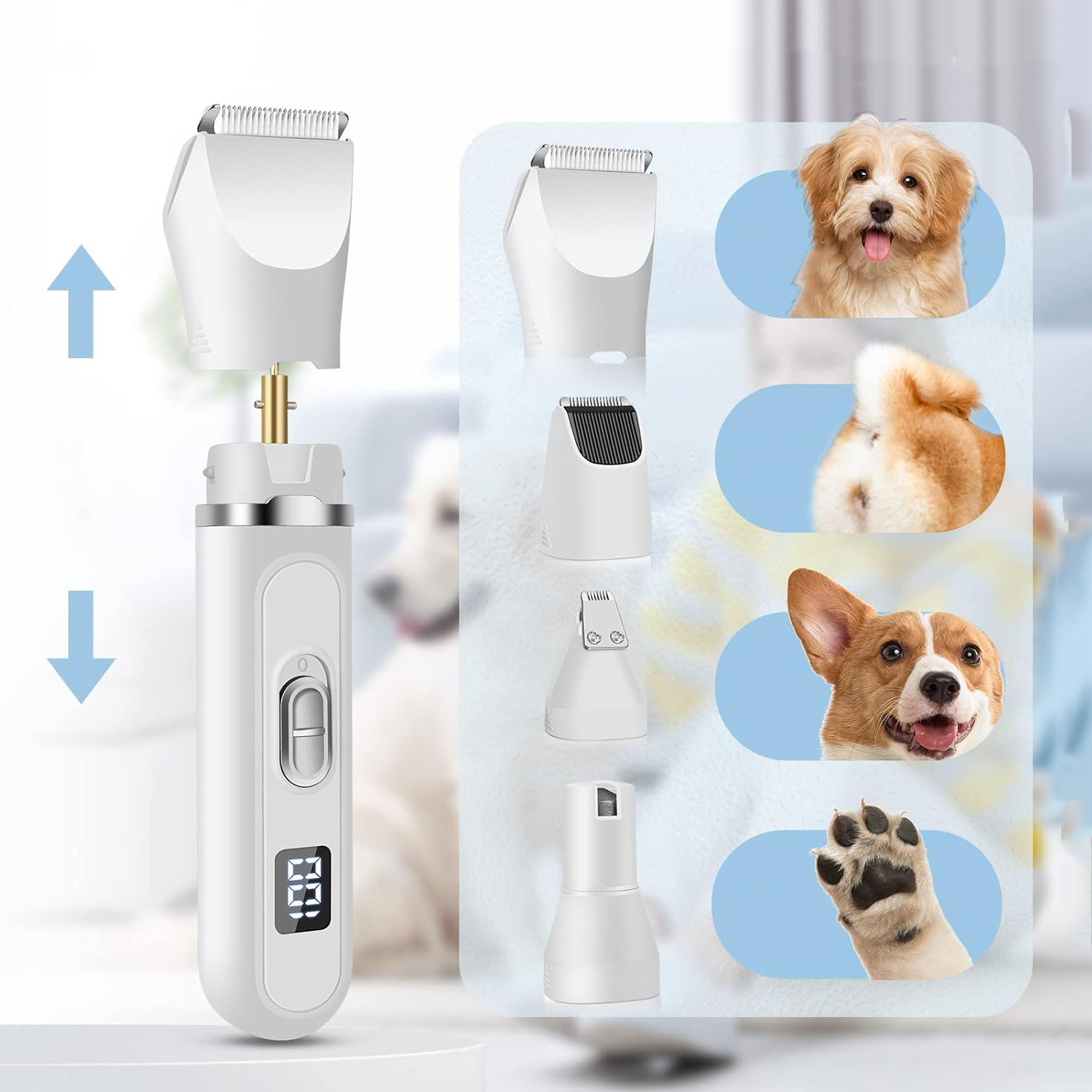 🐶 Машинка для стрижки домашніх тварин 4 в 1: міні-лезо і 1 стандартне лезо, 1 кінчик цвяха, 1 вузька головка. Чотири змінні леза можна використовувати для підстригання обличчя, вух, всього тіла, стегон, підошв і нігтів. Ви можете стригти, не виходячи з дому, і насолоджуватися результатами ветеринарного кабінету за незначну ціну.