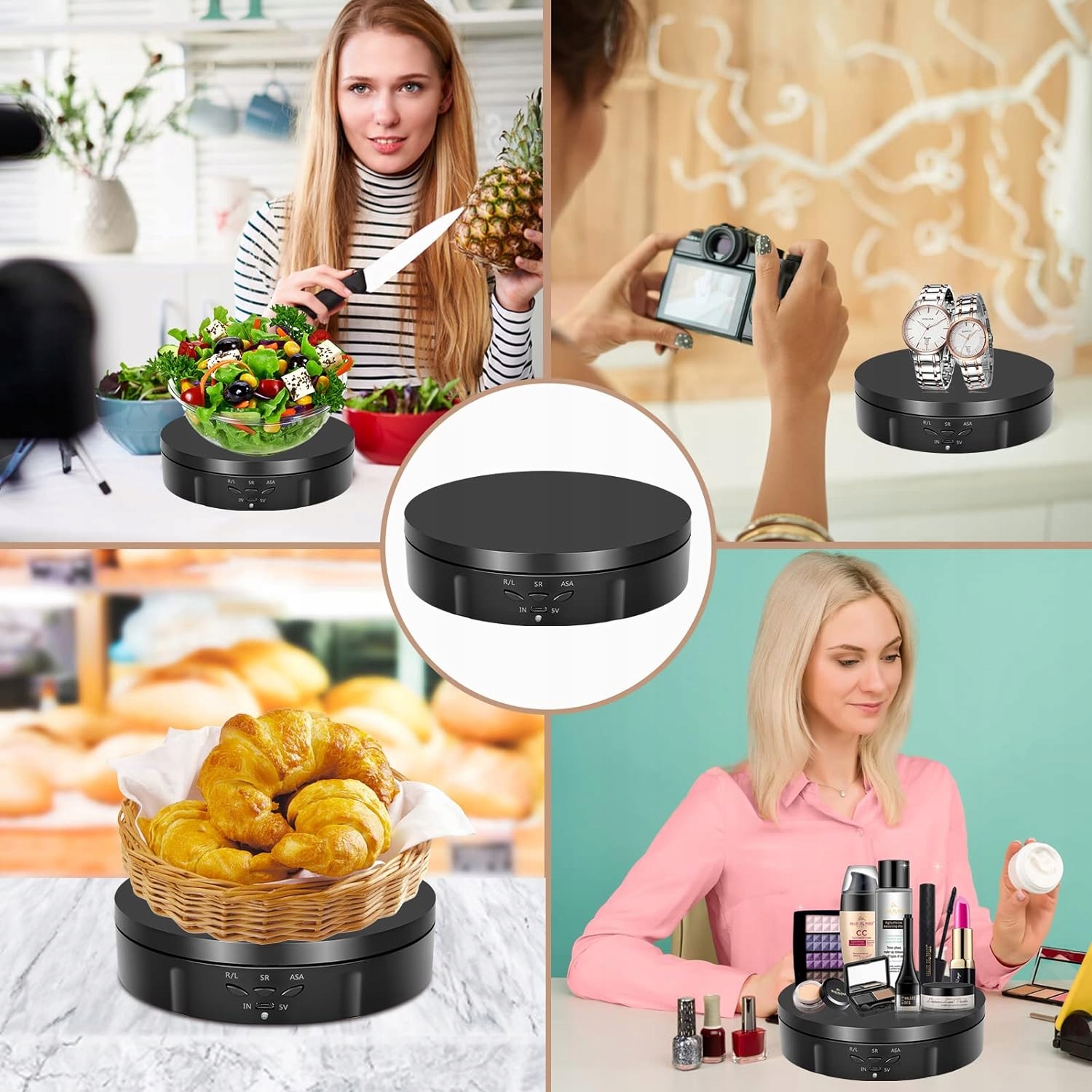 💞 Широке застосування: Поворотний стенд ідеально підходить для демонстрації ювелірних виробів, годинників, електронних виробів, сумок, моделей, дорогоцінних каменів і предметів колекціонування. Надайте покупцеві 360-градусний огляд вашого продукту та дозвольте фотографу робити фотографії в 360-градусному огляді.