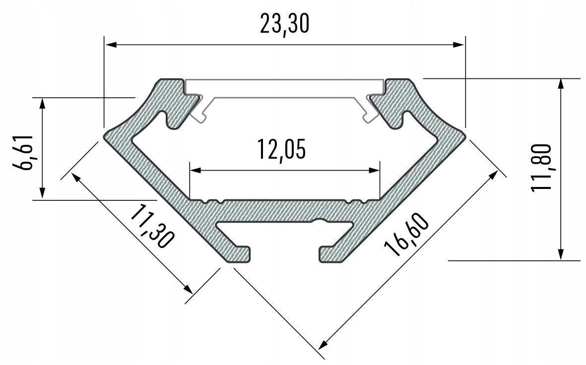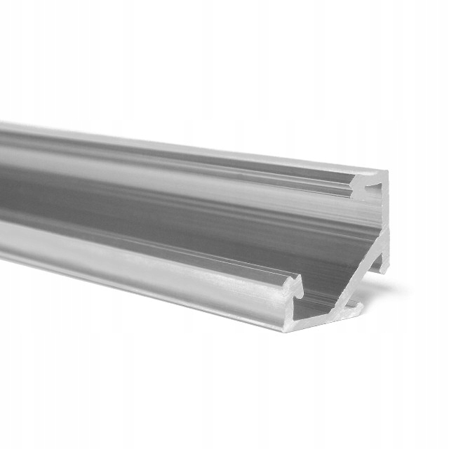 Алюмінієвий профіль для світлодіодних стрічок кутовий з кутом нахилу світлодіодної стрічки/стрічки 45 градусів. Один із найбільш мінімалістичних і сучасних дизайнів. Ідеально підходить для дизайнерського з’єднання двох перпендикулярних поверхонь і скрізь, де необхідно спрямувати світло, що йде від профілю під кутом 45 градусів.