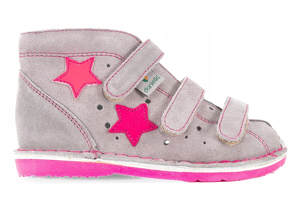 - Колір: СІРИЙ / РОЖЕВИЙ ФЛЮО (підошва, зірочки, шви)