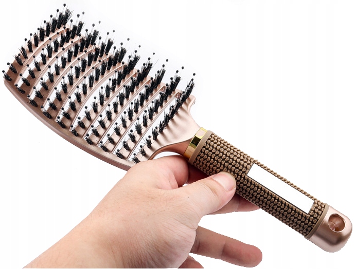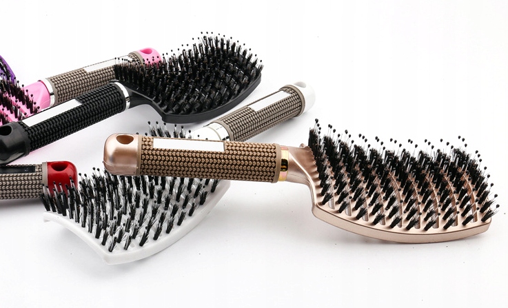 Поверхня щітки для розплутування є відповідною широкі та вигнуті, щоб правильно адаптуватися до анатомічних форм голови. Щітка має щільно розташовані нейлонові голки для розплутування, оброблені кульками, завдяки чому вони ніжно діють на шкіру голови та додатково її масажують. Кожна з голок вбудована в пучок натуральної щетини дикого кабана, який неінвазивним, але ефективним способом розчісує волосся.