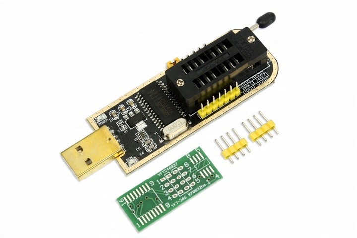 ✅ Програматор флеш-пам'яті на базі мікросхеми CH341A, оснащений 16-контактним роз'ємом ZIF (2x8 контактів) з окремими місцями для Flash-чіпів, програмованих через інтерфейс SPI та мікросхеми EEPROM , запрограмовані через шину I2C.