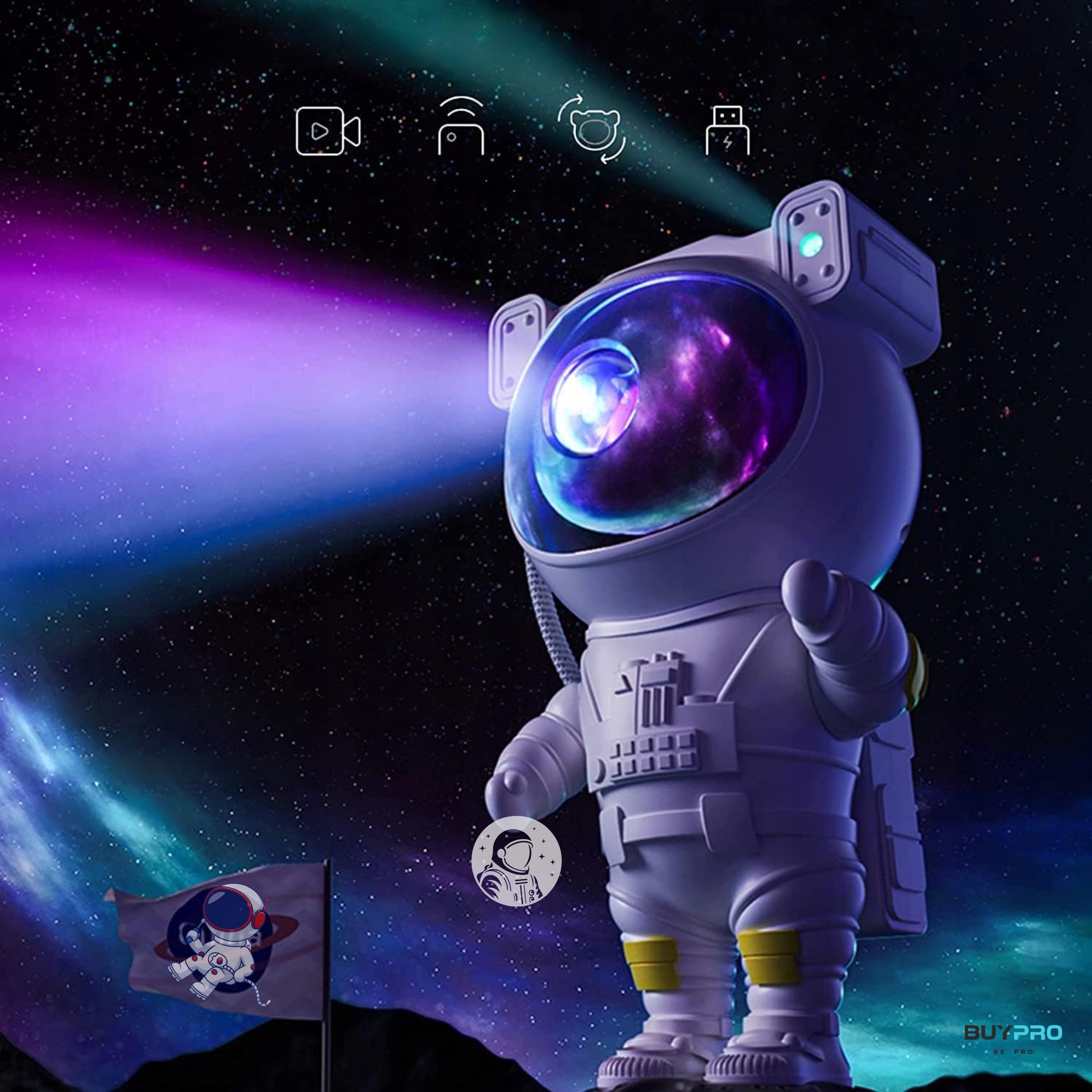 PROJEKTOR GWIAZD Led LAMPKA NOCNA ASTRONAUTA DLA DZIECI RZUTNIK NEW 4.0 PRO