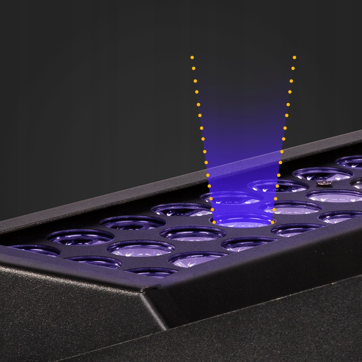 Flood36UV оснащений щонайменше 36 світлодіодами з потужністю 3 Вт на світлодіод. Завдяки великій кількості світлодіодів і потужності світлодіодів Flood36UV забезпечує високу світловіддачу для максимального ефекту чорного світла.