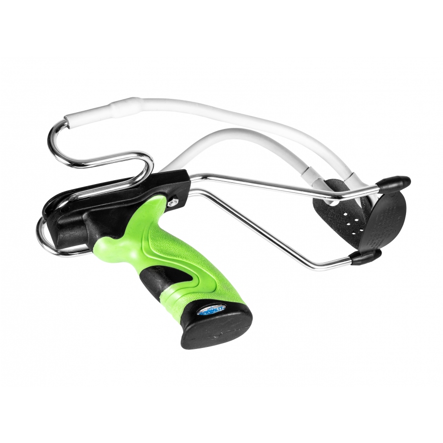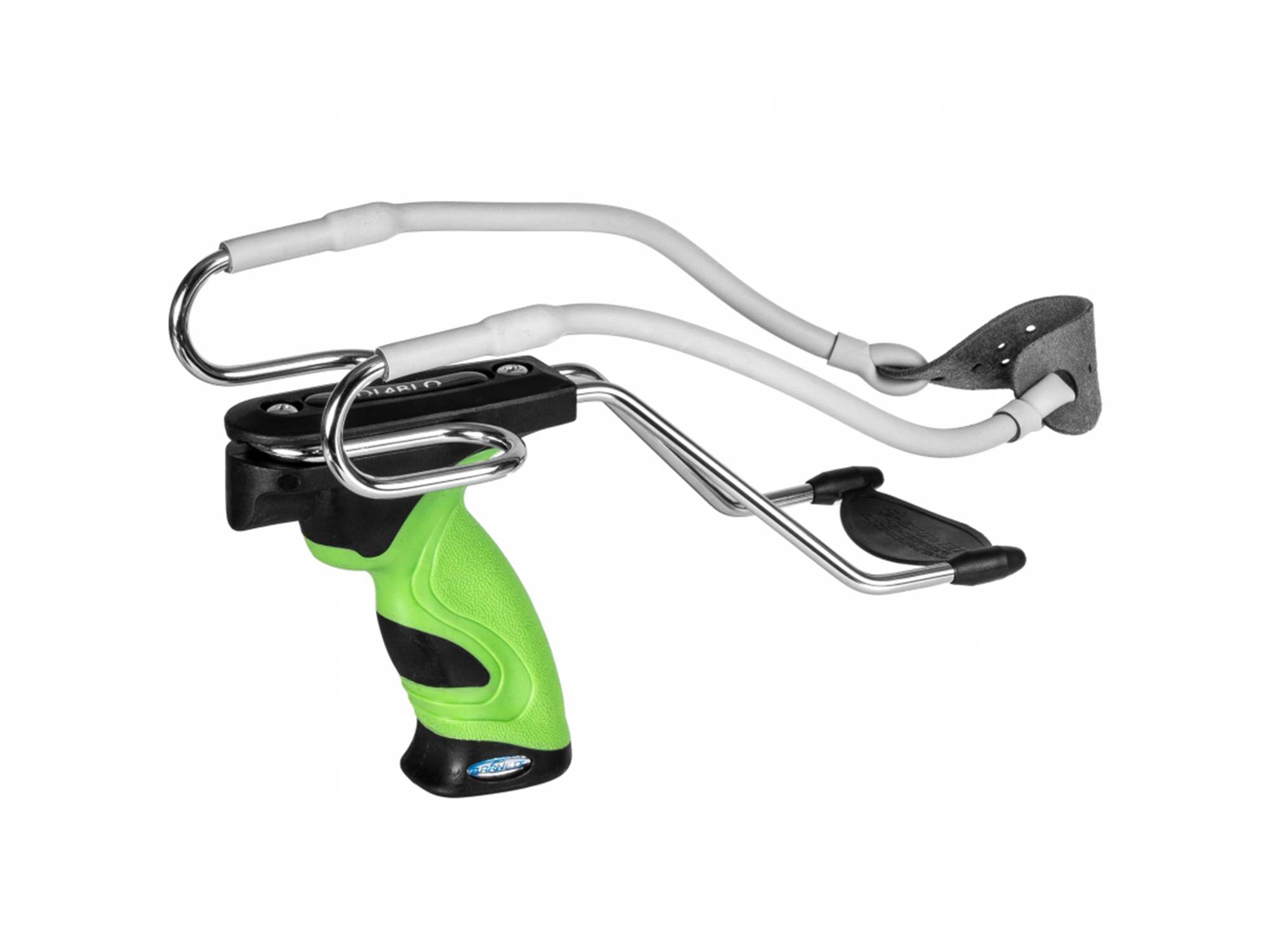 Професійна рогатка Diablo Slingshot не тільки надзвичайно міцна, але й надзвичайно зручна для стрільби. Система «Soft Touch» — це інноваційна конструкція ручки, яка м’яко та зручно лежить у руці, що дозволяє знімати годинами. Призначений для початківців і просунутих стрільців. Ніжка стабілізатора значно підвищує точність. Стійкі до розтягування гумові кінці зі шкіряним кошиком.
