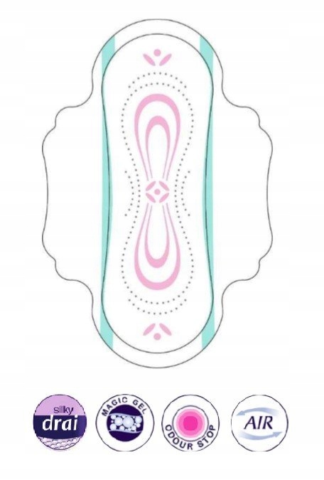 Silky drai: завдяки використанню шовковистої сітки drai гігієнічні прокладки надзвичайно ніжні на дотик. Це знижує ризик подразнення - навіть у жінок з надзвичайно чутливою шкірою.