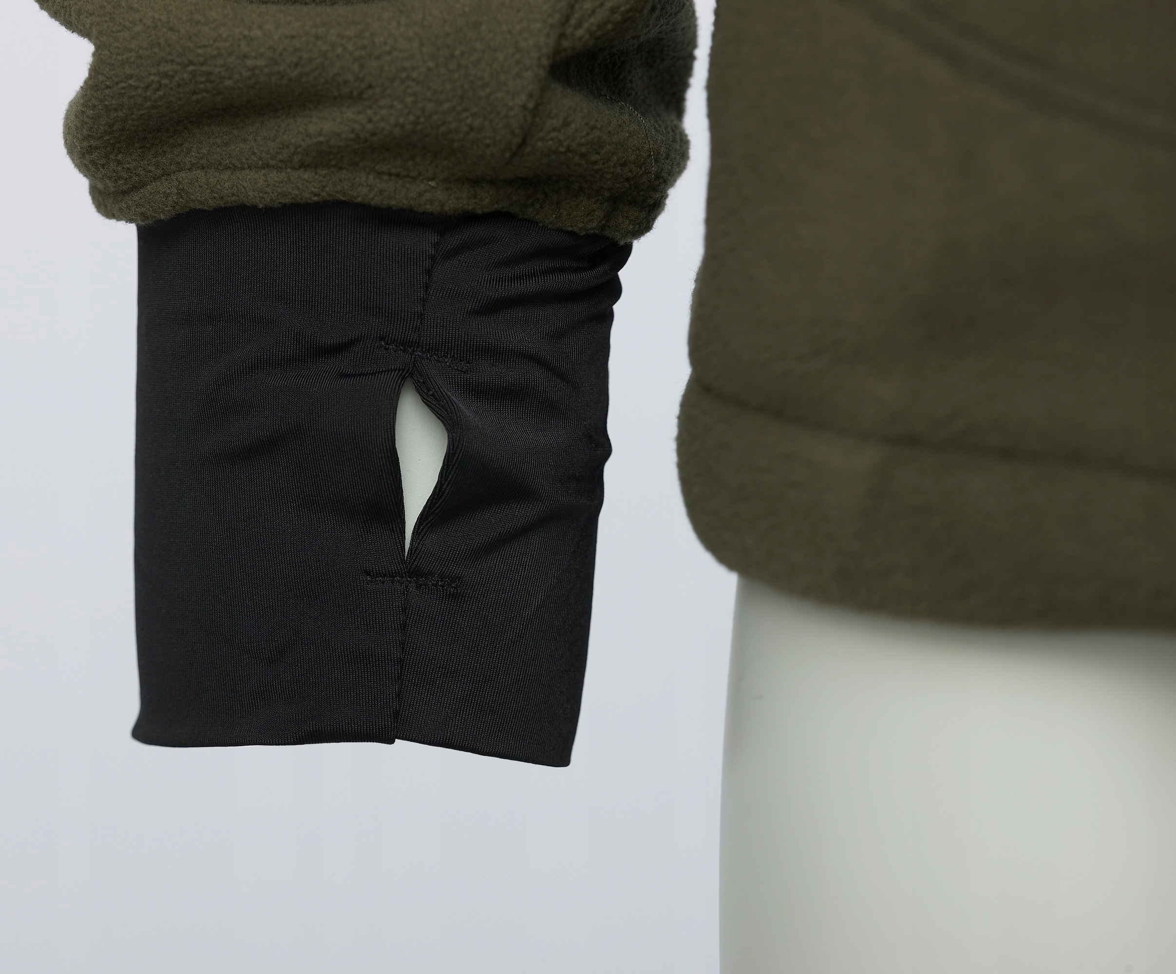 - Приємні на дотик та комфортно подовжені манжети з лайкри, з отворами для великого пальця