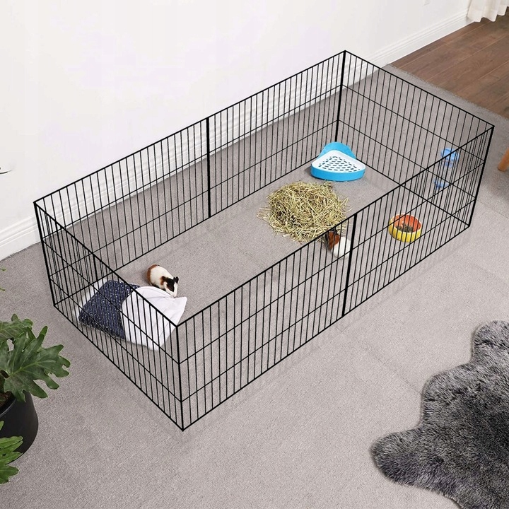 Клітка WYBIEGOWO для тварин — це ідеальне рішення, яке гарантує безпеку та радість вашому улюбленцю! Ви можете зібрати її з окремих металевих прольотів, покритих міцною чорною або зеленою фарбою, і з’єднувачів. що дозволяє зібрати манеж разом. Складена клітка дозволяє тварині мати місце для гри, відпочинку та бути відокремленим від інших тварин. Це чудова огорожа для маленьких собак, цуценят, кішок, кроликів та інших дрібних домашніх і сільськогосподарських тварин.