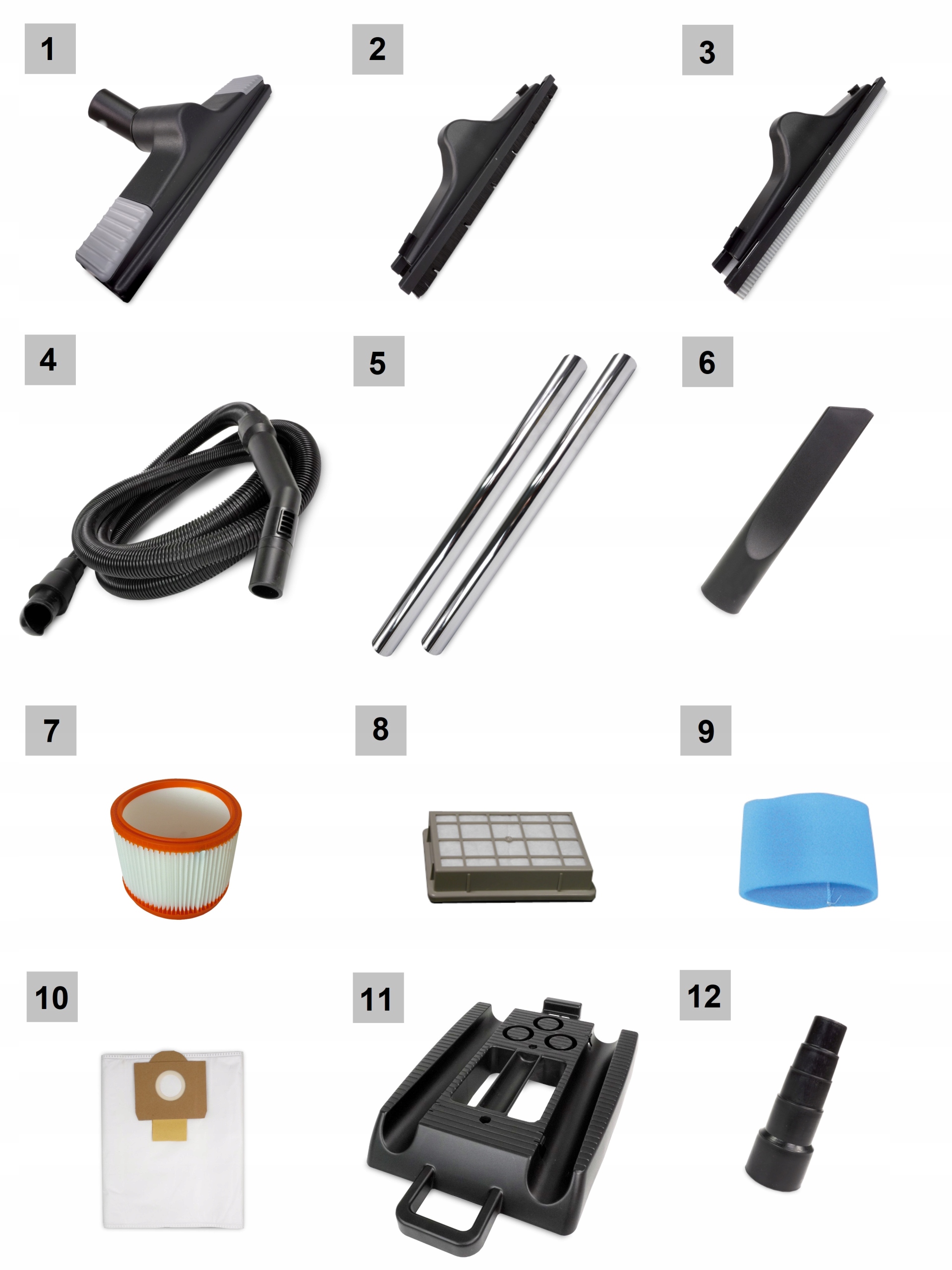 ✅Функція майстерного пилососа значною мірою базується на всмоктувальних наконечниках. Добре укомплектований прилад повинен мати кілька, завдяки чому вони дозволять ефективно очищати різні поверхні, в тому числі і важкодоступні. Щілина, щітка та гумові наконечники особливо корисні, оскільки вони полегшують видалення рідини. Всмоктувальна труба регульованої довжини також допоможе в ефективному пилососінні.