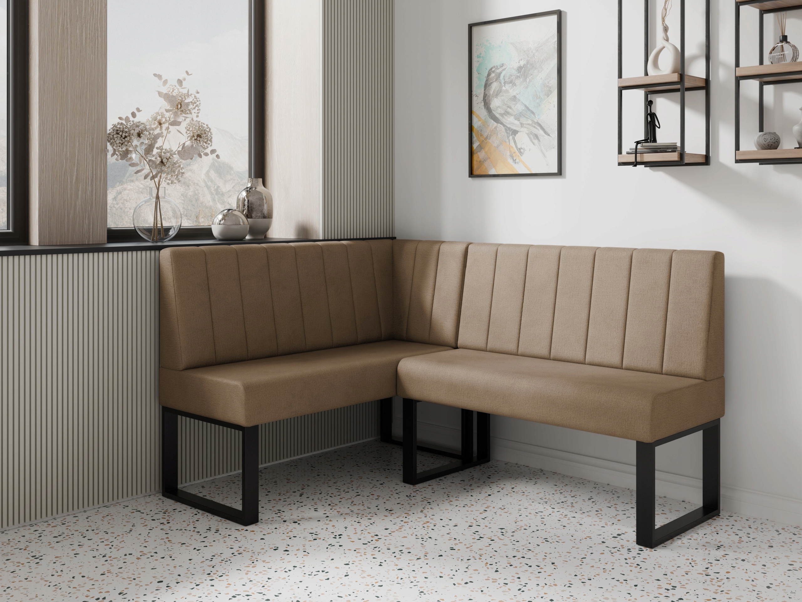 Сучасний кухонний куточок MADRID поєднує в собі елегантність і комфорт. Ідеально підходить для кухні чи їдальні, виготовлено з високоякісних тканин - вибір кольору та розміру.