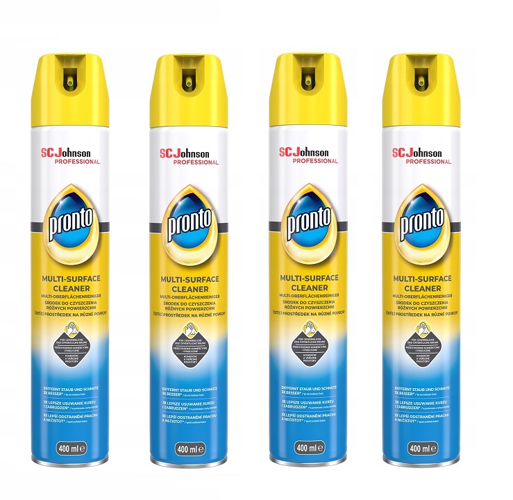 - унікальна формула піни Pronto швидко та ефективно видаляє пил та бруд, захищаючи очищені поверхні від слідів повсякденного використання