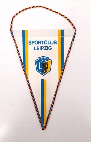 Умова: Дуже хороший опис: подвійний, виготовлений з матеріалів, вимпел німецького клубу SC Leipzig, який був найбільш успішним під час існування Німечірної демократичної республіки. Хоча у нього була футбольна команда, він досяг більше в гандболі (чоловіки - 3 рази більше чемпіона з питань НДР; жінки - 2 рази Кубок чемпіонів Європи, 13 разів більше чемпіона з питань НДР) та волейбол (чоловіки - колись Кубок чемпіонів Європи, в 19 разів більше чемпіона з питань НДР; жінки - в 3 рази чемпіон ГДР). Крім того, Клуб колись виграв Чемпіонат НДР у хокеї на льоду. На першій сторінці Покорчика була емблема та назва клубу на тлі його кольорів, а на другому емблемі Eastote на тлі кольорів прапора держави.