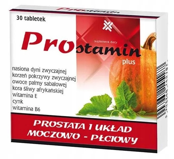 Простамін Плюс - це дієтична добавка у формі таблеток, кожна з яких містить цинк, вітамін Е та вітамін В6 та екстракти 4 рослин. Це екстракти з: насіння гарбуза, кореня кропиви звичайної, плодів пальмети та кори африканської сливи. Препарат призначений для дорослих чоловіків.