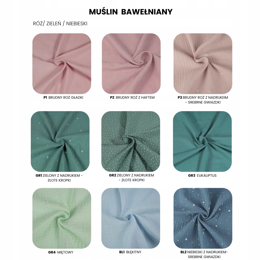 - Double Марля : сертифікована (OEKO-TEX, сертифікат XS GOTS), надзвичайно приємна на дотик і ніжна. Це тканина, яка гарантує виняткову делікатність і комфорт.