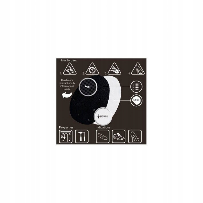 Ідеальний продукт для людей, які цінують комфорт і легкість ходьби. Обов’язковий аксесуар для весілля та танців. Завдяки використанню протиковзкої підошви ми можемо стабільно та безпечно рухатися під час ходьби та танцю. Підошва самоклеюча і приклеюємо її до підошви взуття. Крім того, підошви взуття захищені від надмірного стирання.