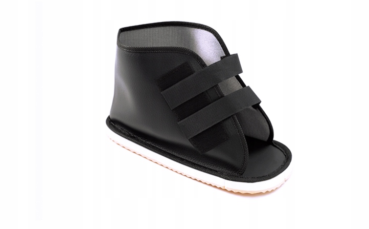 Універсальне взуття з гіпсу. Низька вага взуття збільшує комфорт використання та обмежує тягар хворої кінцівки . Кріплення на липучках дозволяє індивідуальну відповідність до ширини стопи та штукатурки. Профільований підошва, що не є, дає відчуття більшої стабільності під час ходьби, збільшує комфорт руху. Легко, водонепроникний матеріал захищає гіпс від змочування або бруду.