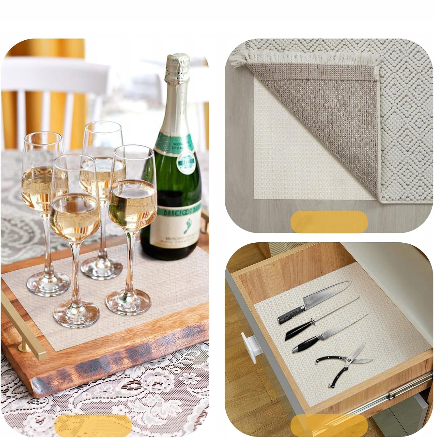 ✅ Багатофункціональність: Протиковзкий килимок можна використовувати на килимах, простирадлах, покривалах, подушки, килимки тощо. Його також можна розмістити на еркері та вставці ящика полиці, щоб запобігти ковзанню дрібних предметів. Протиковзкий і красивий.